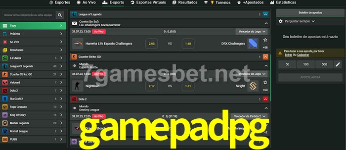 O gamepadpg oferece uma grande seleção de opções de apostas em e-sports com probabilidades competitivas